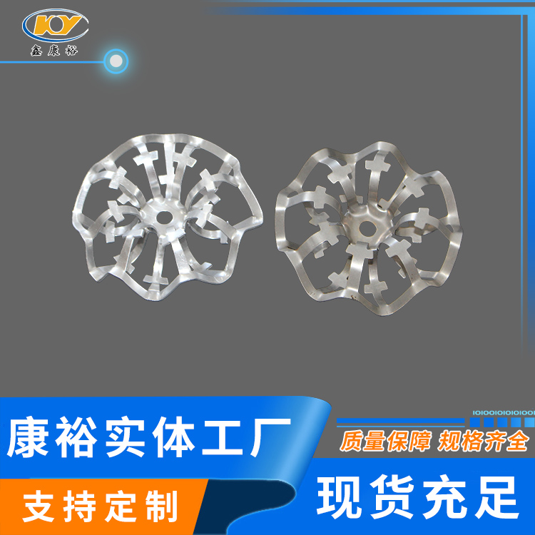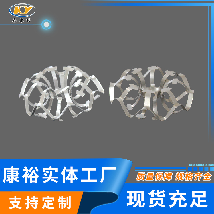 DN95鋁合金花環(huán)填料公司新研發(fā)的金屬花環(huán)填料(鋁花環(huán),鋁合金、不銹鋼花環(huán))材質(zhì)主要包括碳鋼、鋁合金及不銹鋼等。由于其壁薄,空隙率大,通量大,阻力小,分離效果好,特別適真空精餾塔,處理熱敏性,易分解,易聚合,易結碳的物料。如煤氣脫水器采用鋁花環(huán)填料,應用后傳質(zhì)效率好,脫水,機械水含量≤20g/m3,并滿(mǎn)足高爐熱風(fēng)爐的要求。